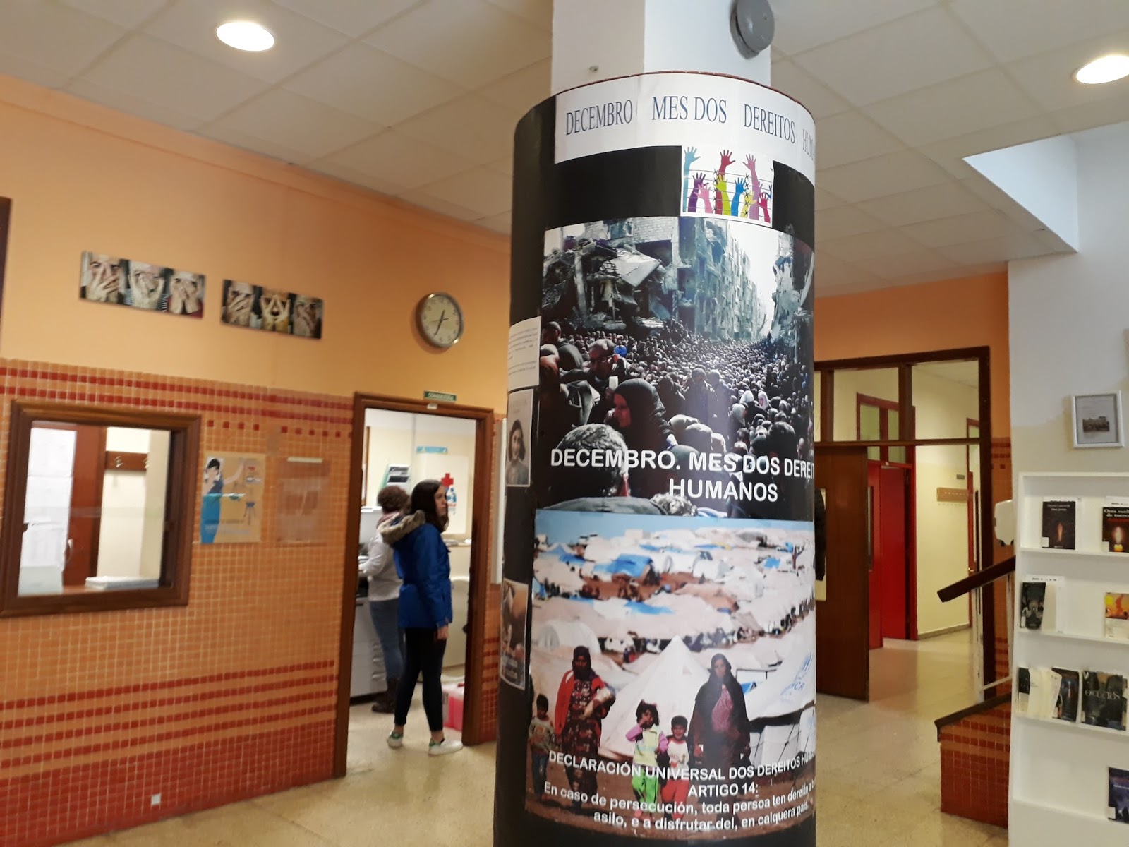 Cun dramático mural inspirado no Gernika de Picasso, o profesor de debuxo Manuel Sánchez, resumiu o lema da exposición realizada este ano sobre os dereitos humanos: Repítese a historia. Neste mural reflíctese a angustia, desolación, pánico, ansiedade, inseguridade, incertidume, ... que sofren e sofriron todas aquelas persoas que tiveron que abandoar os seus fogares por mor dunha guerra.